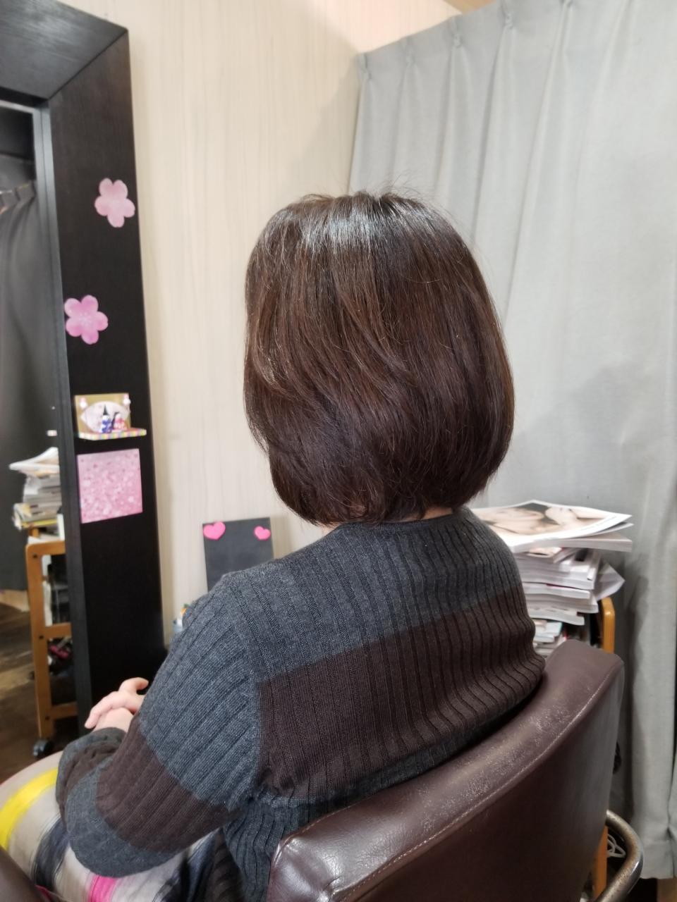 丸み、ボリューム感、つや感を出した内巻きボブに…させて戴きました!