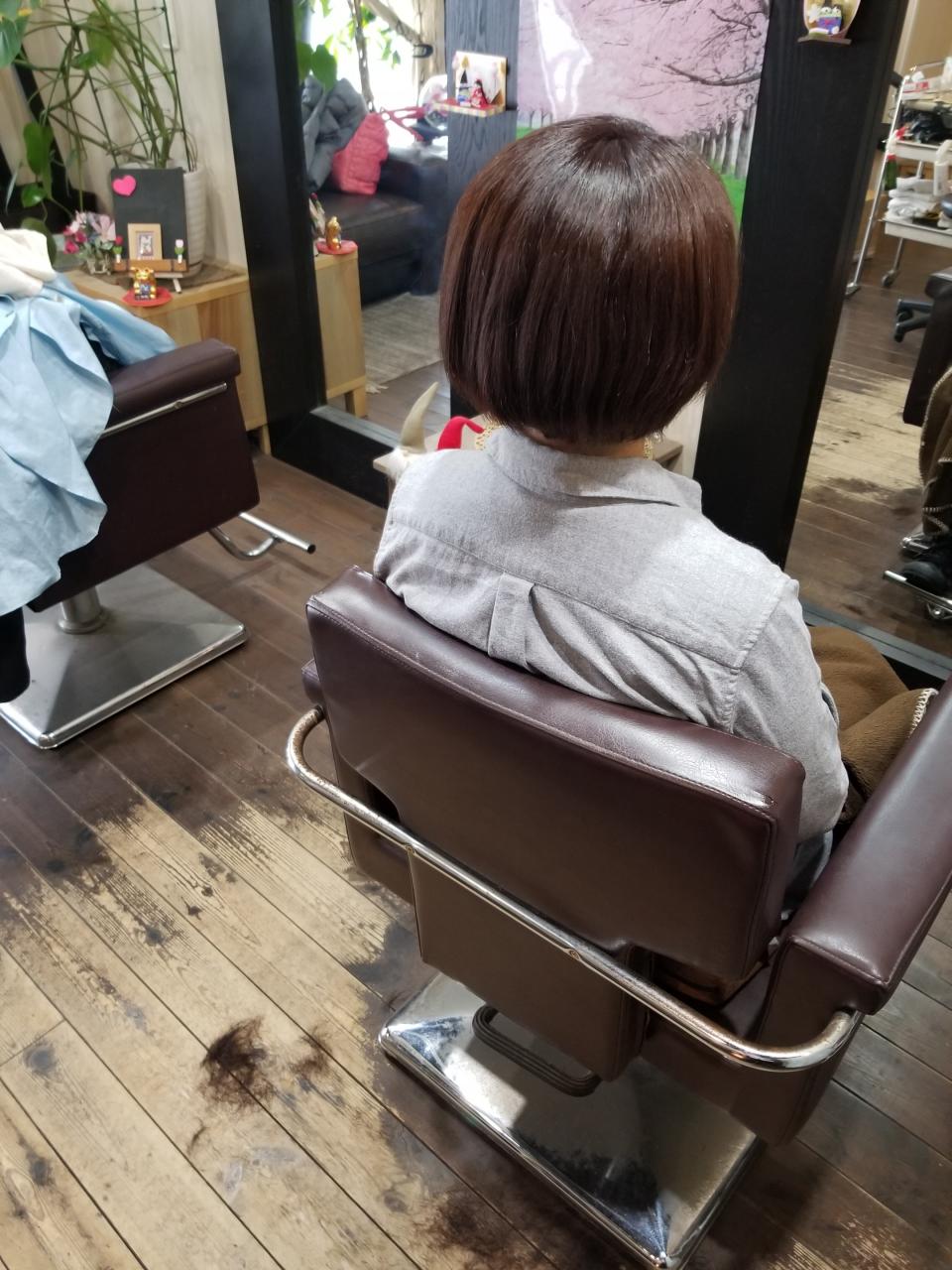 ショートグラデーション前さがりボブで薄くラインカラーで…